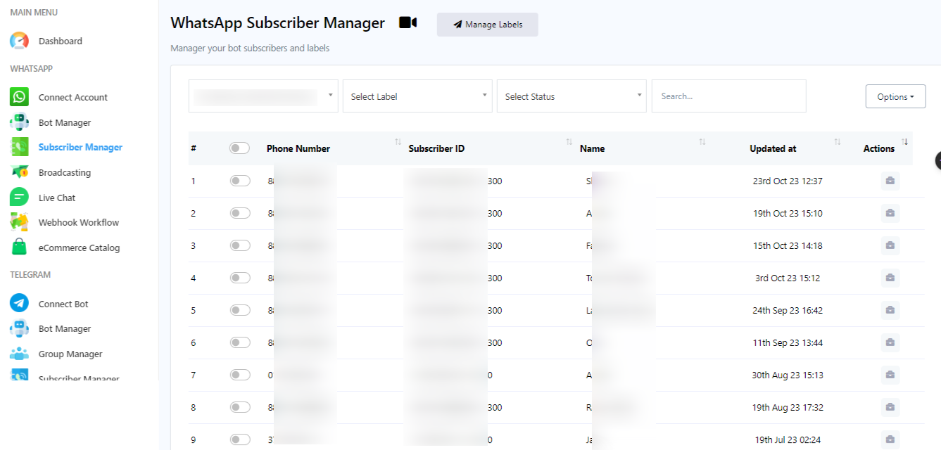 WhatsApp Subscriber Manager is designed to efficiently handle and organize WhatsApp contacts and subscribers. It enables users to streamline their messaging campaigns and communication with a large group of subscribers, making it ideal for businesses, marketers, and organizations. With this tool, you can categorize and manage your contacts, which will help you send personalized messages, schedule broadcasts, and analyze campaign performance. ultimately helping you stay connected and engaged with your WhatsApp audience effectively.