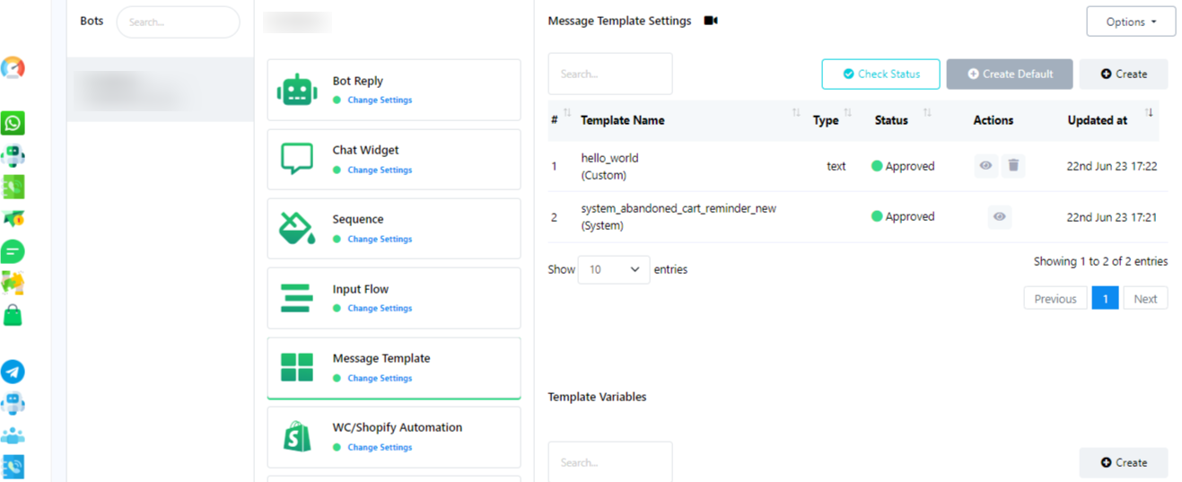 - Go to ZaidiPro Dashboard and navigate to the Bot manager section.